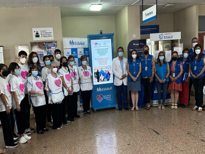 Inauguración de los tótem digitales en el hospital Edgargo Rebagliati Martins, el cual brindará información importante acerca de las áreas de salud y servicios que ofrece el hospital, para los usuarios.